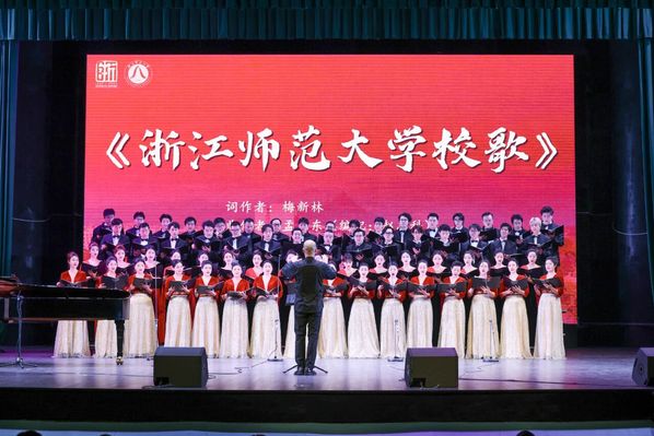 “我们从钱江之滨起航,我们在芙蓉峰下成长……”当艺术学院唱响这熟悉的旋律时,全场观众不约而同地起身,齐声高唱《浙江师范大学校歌》。